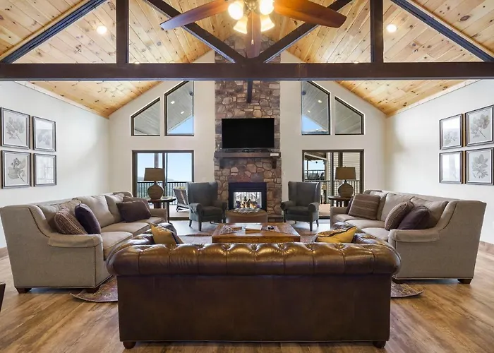 The 8-bedroom Luxe Lodge Gaming Paradise W Breathtaking Lake Views Indoor Pool Close To Sdc Branson offers swift access to various city sites, such as the Indian Point Family Fun Park, situated just 6 minutes' walk away. Featuring a Jacuzzi and an indoor pool, the holiday home is 4.5 km from the 13-acre commercial recreational White Water.